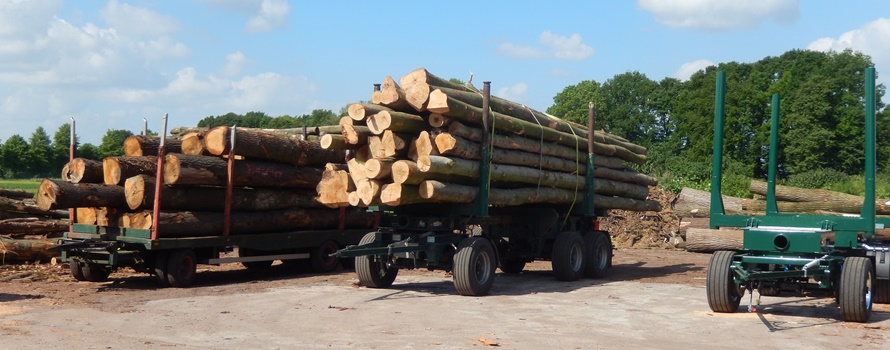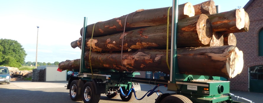 Spezielle Holzanhänger, auf unterschiedliche Längen verstellbar, ermöglichen uns, Kurz- und Langholz zu transportieren.